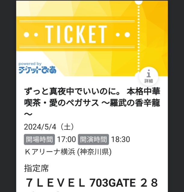 票卷進帳號的時候我傻了 Kアリーナ Level7 側邊最後一排,