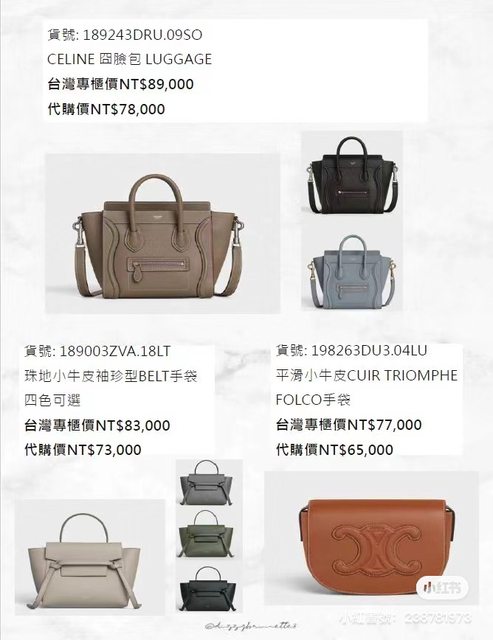 可代買物品:Celine、LV精品包