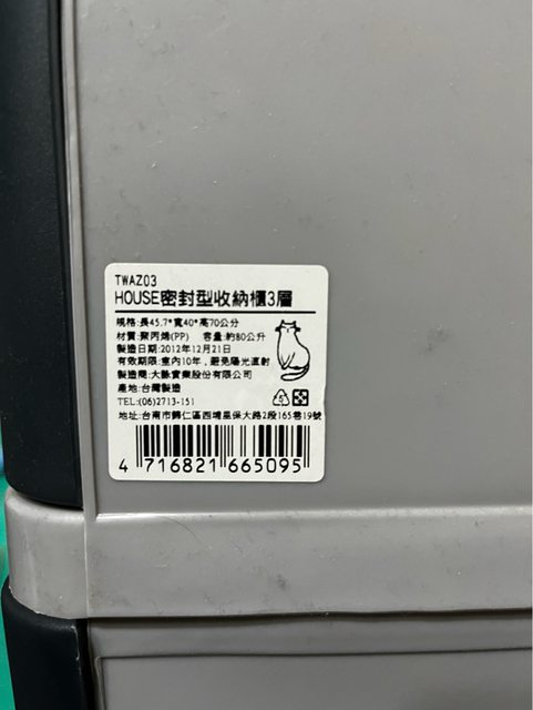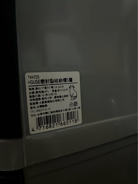 物品項目:三層櫃+五層櫃