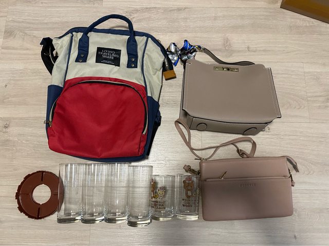 B組 包包、玻璃杯(旁邊圓圓的是阻止杯子滾走)