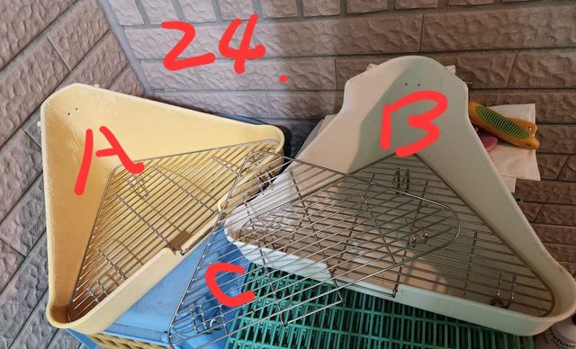 24. 寵物三角便盆,底網是不鏽鋼的,2組+1底網,可分取。