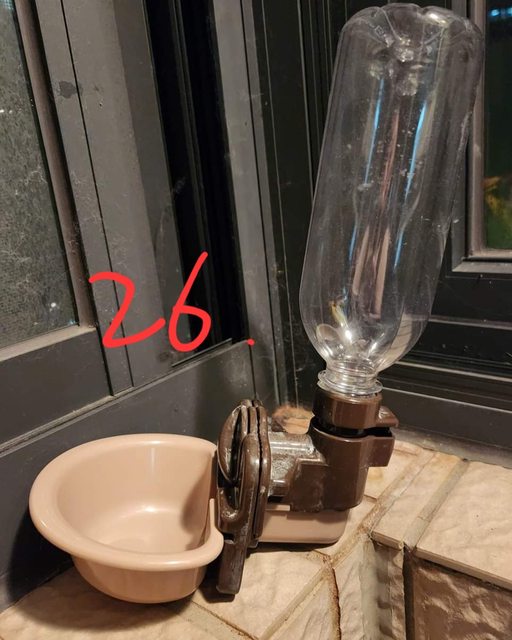 26. 寵物喝水神器,水瓶扣子斷了,但裝滿水後重力下壓不影響使用。
