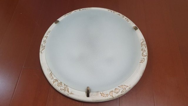 這個傳統吸頂燈,直徑約41公分,可裝三個燈泡跟一個夜燈小燈泡。狀況良