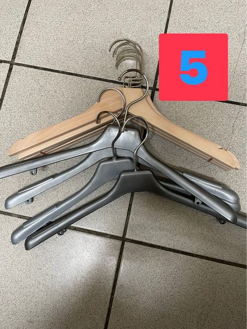 5.塑膠*4、木頭衣架*6(全新),因放置較久,有些表面有生鏽