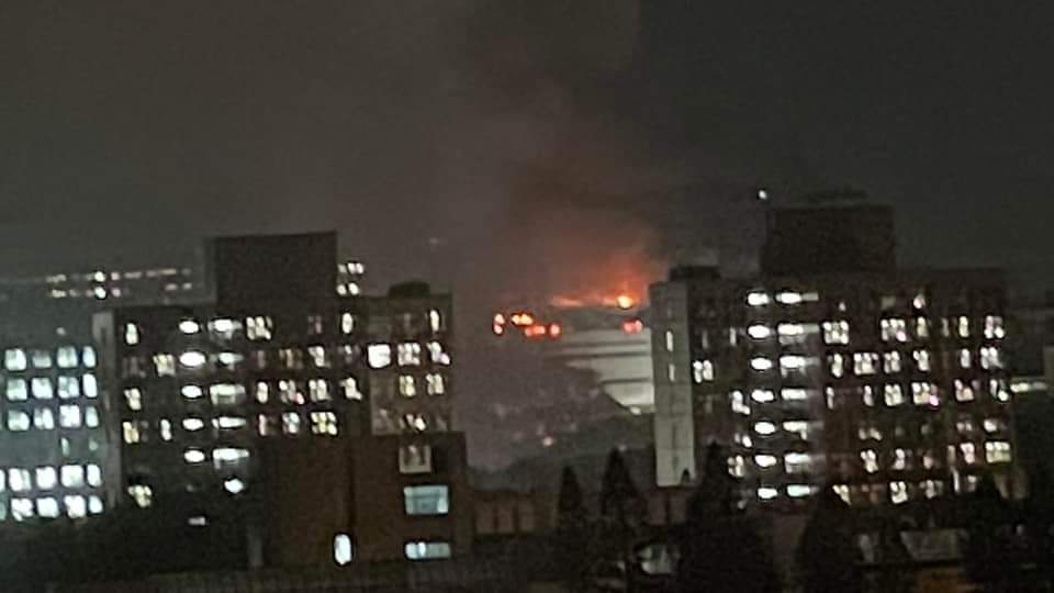 有附近網友表示,「在高通旁邊的緯創又火災了?火舌竄燒屋頂還在延燒,應該整棟都毀