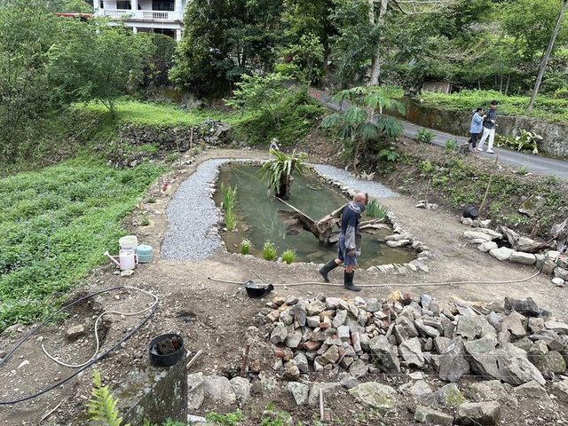 起「生態池」的搭建工作。林慶台表示,希望生態池能成為凝聚社區的景點。