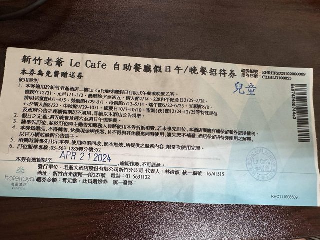 標題[交換] 老爺Le Cafe 自助buffet假日午晚餐券