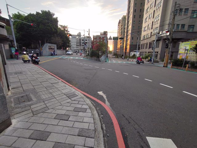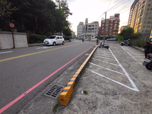 群英樓旁邊有實體人行道 無退縮牆,無實體的地方都仰賴標線人行道