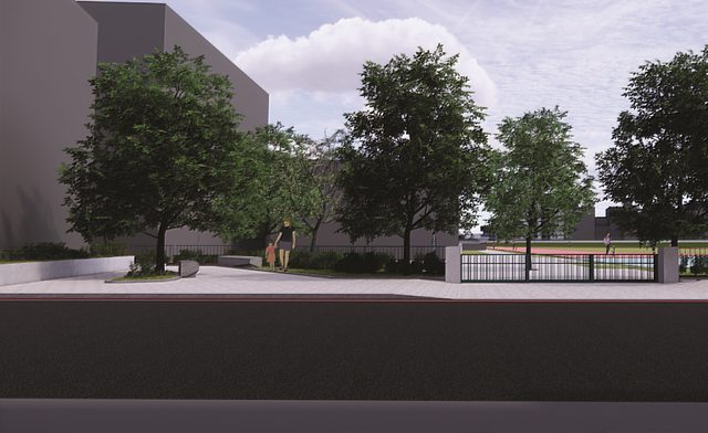 新竹市東園國小通學步道工程模擬圖。 (側門一)