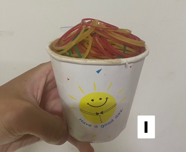 贈出I. 滿杯的橡皮筋(有大有小)