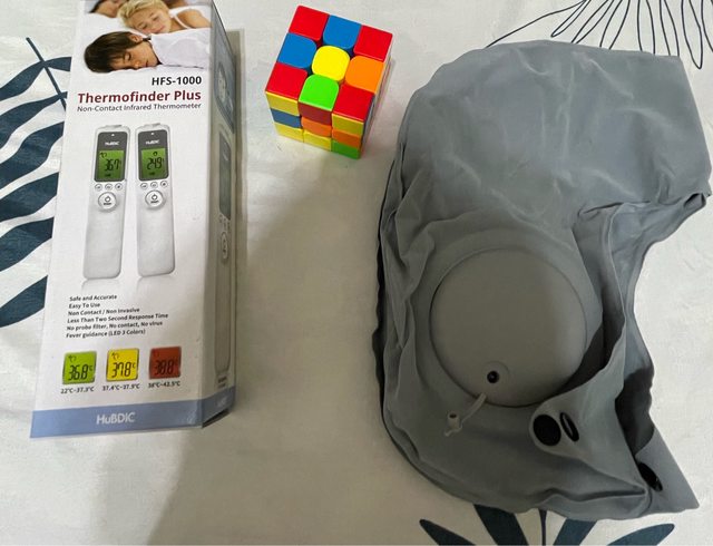 6. 體溫計、魔術方塊、充氣頸枕:魔術方塊是一時興起買的;體溫計是尾牙抽到的,沒