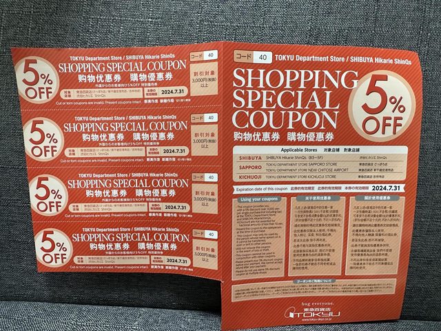 物品項目:日本東急百貨購物優惠券(效期至7.31)