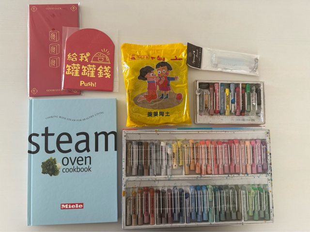 紅包袋、陶土、臘筆、食譜書、梳子