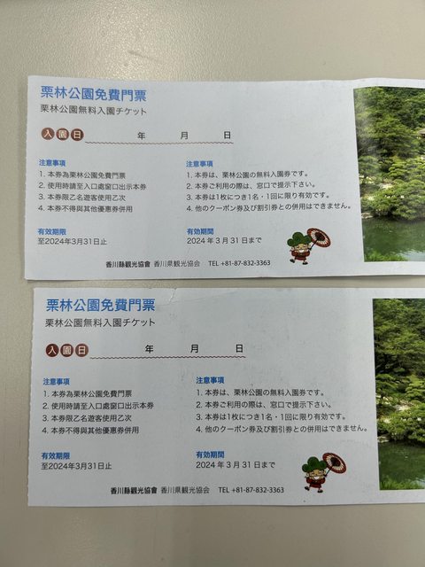 四國 高松 栗林公園 免費入場券 兩張