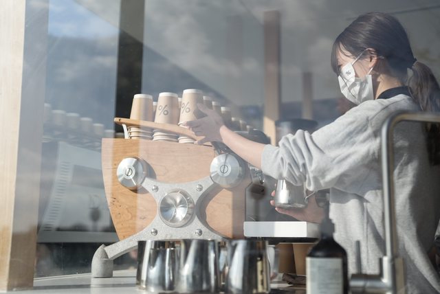我等母女換裝過程先去買咖啡— % ARABICA 京都嵐