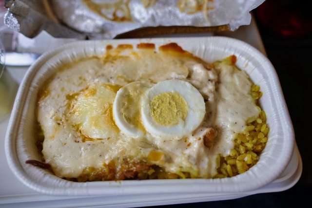飛機餐 沒想到是焗烤咖哩雞 奶味有夠重的… 整個沒吃 雖然有先查日航官網餐點內容 但看不懂也沒去查翻譯XD 大失策