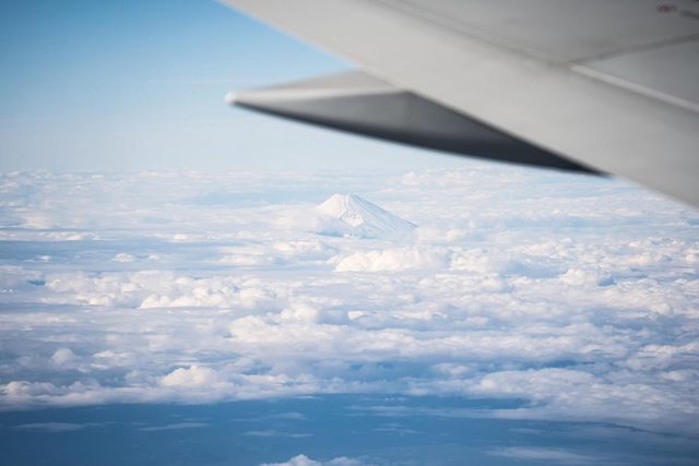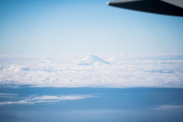 經過富士山時機上有廣播左側可看到富士山 可是還是有點遠