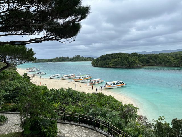 約12點出頭抵達川平灣,我們停在收費停車場、只能電子付款(琉球真珠本店似乎有免費