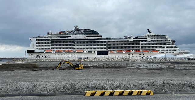 這是在沖繩港邊遠拍整艘郵輪。