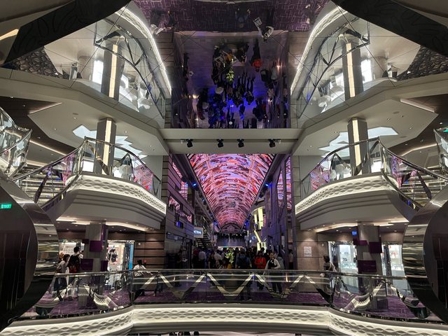 這是船艙中央5-7樓,有LED天幕、施華洛世奇水晶旋梯。