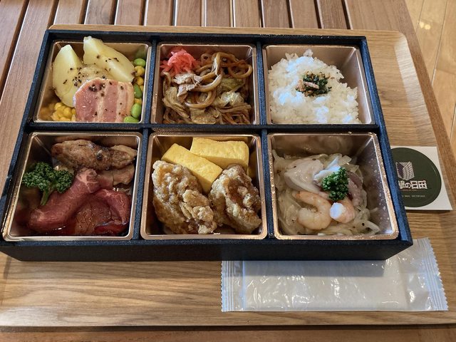 便當內容物有日田市的名產,還有諫山老師很喜歡的炸雞跟炒麵
