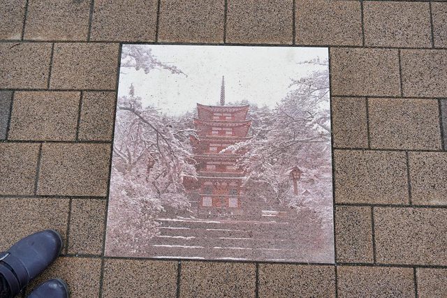 然後到了日川時計店很多人會拍富士山的地方 想說雖然沒得看但都來了還是要拍一下XD 不過就連富士山沒露臉還是看到有人站在馬路上拍 路是有弧度的所以站在人行道上就可以拍了