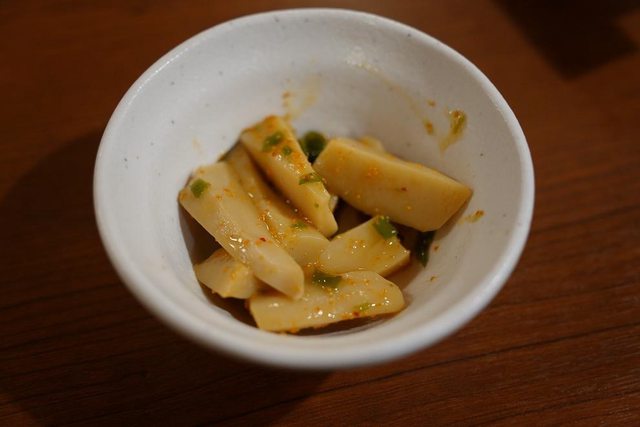 今天的お通し是杏鮑菇 一開始我們2個都以為是竹筍XD