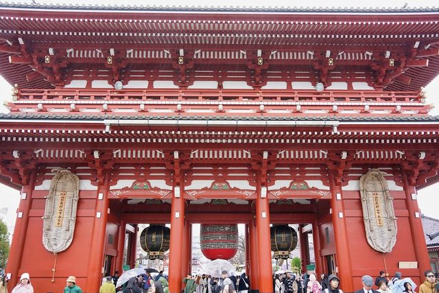 上午9點40分到雷門 很多很多人 雷門是在942年創建 供奉風神和雷神 曾在1642年、1767年及1865年火災 現在的雷門是在1960年重建的