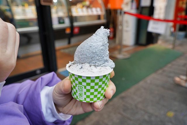 先在門口右側自動販賣機購買餐券 再把餐券交給櫃檯 我們吃小的杯裝2種口味500円