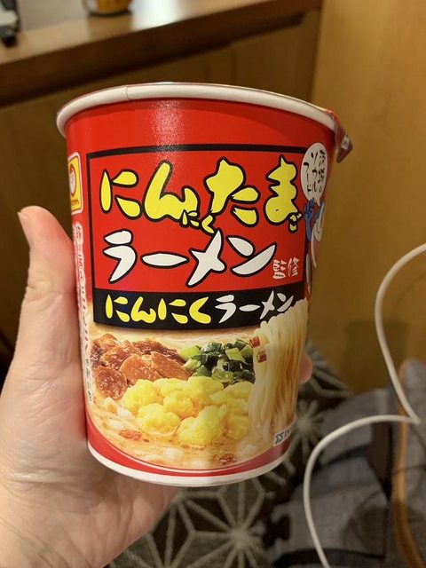 這個是LOWSON在2月13日出的新品 官網是寫大蒜拉麵 廣告還寫吃了外出禁止XDDDDD 不過據老婆說法是味道沒很重啦