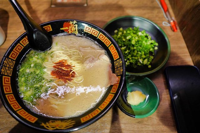 早上8點半就已經客滿了需要排隊 不過沒排很長 前面只有2個人而已 大約等了10分鐘以後就可以入場了 拉麵+蔥+蒜