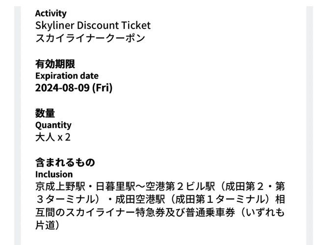 標題[讓售] skyliner 上野到成田機場單程券2張