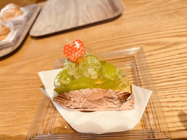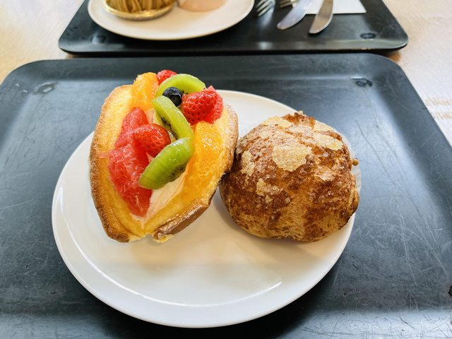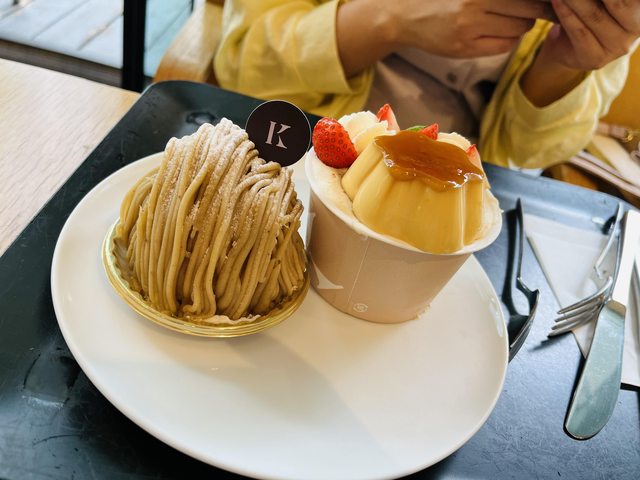 達時人潮不多,且甜點種類眾多,造訪兩次購買了幾項:布丁,上面擺放起司蛋糕,兩者