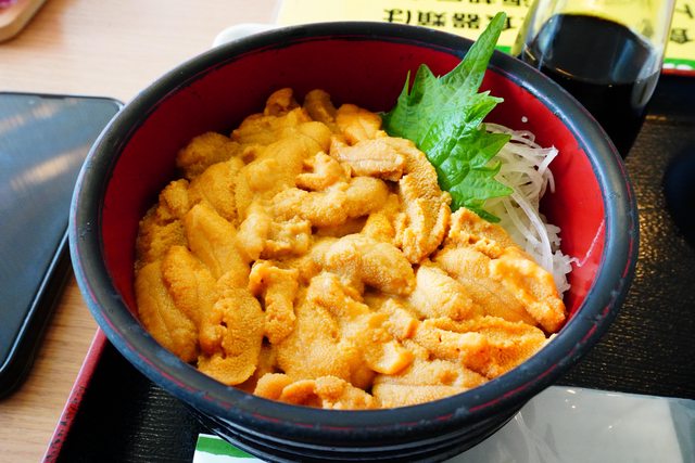 一堆人排隊,但翻桌速度很快。海膽新鮮度遠超過自己曾經吃過的海膽,完全沒有腥味和