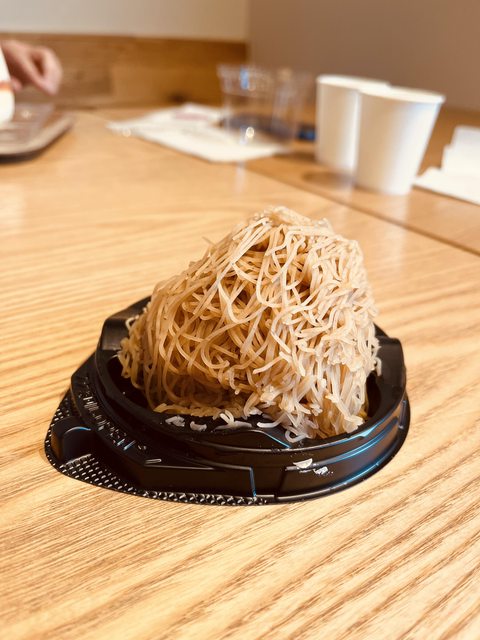 度適中;絲絹栗子蒙布朗不同於普通的蒙布朗,栗子泥的形狀較為細緻,甜度適中順口及