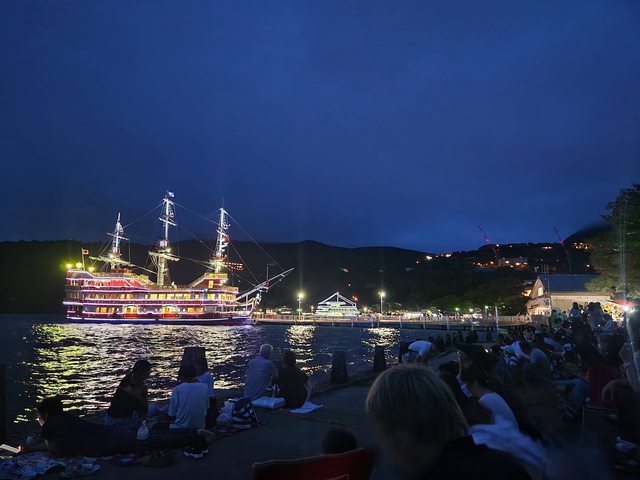 我是在元箱根港看煙火,從元箱根港到接近箱根神社的沿岸都有攤販。