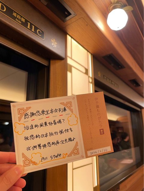 旅途後段工作人員會拿乘車紀念的牌子幫忙在座位上拍照,獻上感謝卡