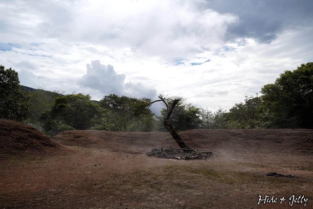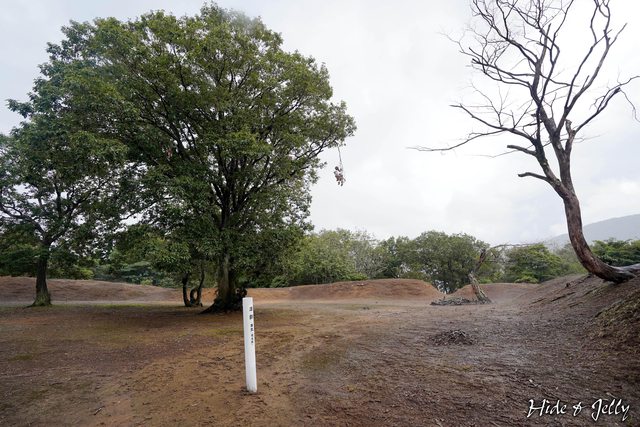 櫓台的土壘大約1公尺並不算高(我們兩個表演一下比例尺),沒有任何礎石遺留,過