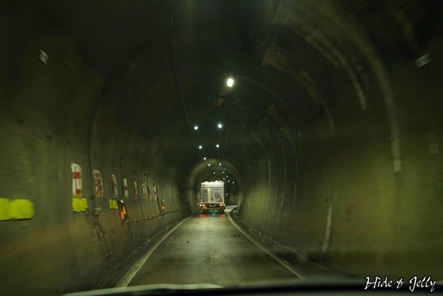 非一直線,蜿蜒的路線無法開快,更覺得隧道相當的長,有種沉重的歷史感。