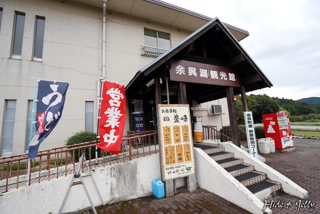 穿過隧道後,來到車程約15分鐘的「余吳湖觀光館」,觀光館本身是右側兩層樓建築物,