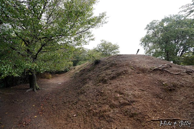 主郭四周的土壘則比1公尺再略高一些,也就是比櫓台再高一些,而這東側土壘往櫓台的