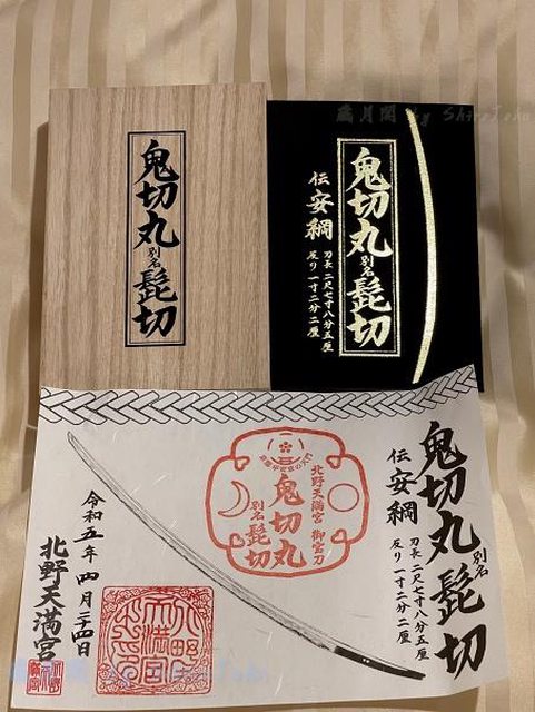 封面主要是北野天滿宮寶物殿中的『鎮館之寶』鬼切丸安綱別名『髭切』,在台灣可能只