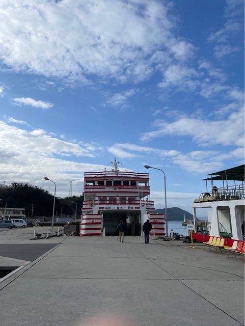 從高松港搭8點的船,搭船的人比預期多,會先到女木島,再停靠男木島