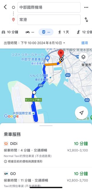 標題[問題] 名古屋 中部機場 —> 常滑站 交通