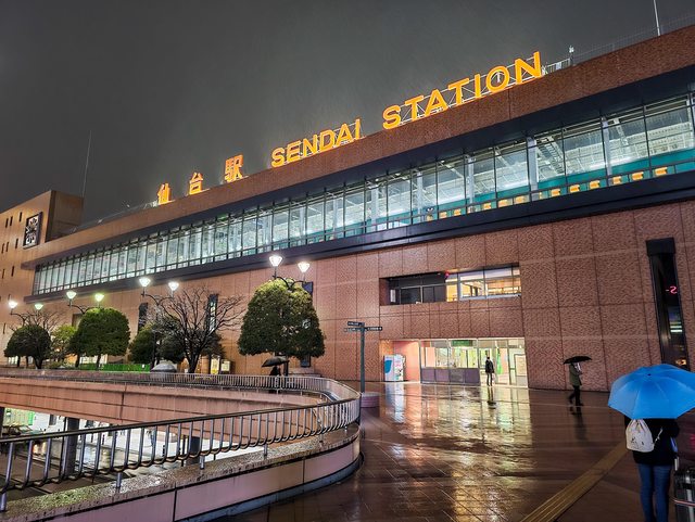 抵達仙台後下著大雨...