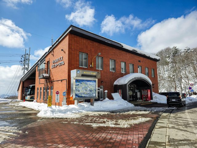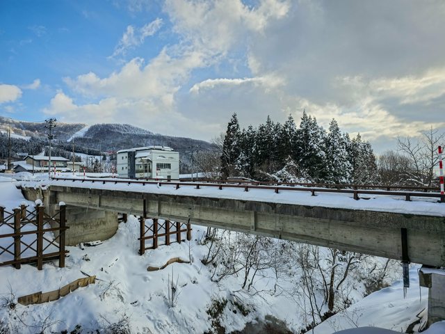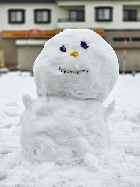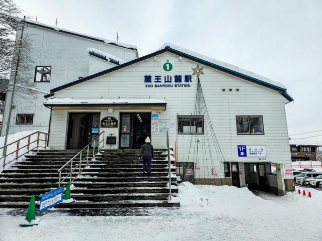 抵達大石田站後等溫泉旅館的接駁車 大石田站還滿小,車站內有一間蕎麥麵店就順便吃午餐 味道只能說很普通不到難吃... 車站外有路人堆的可愛雪人