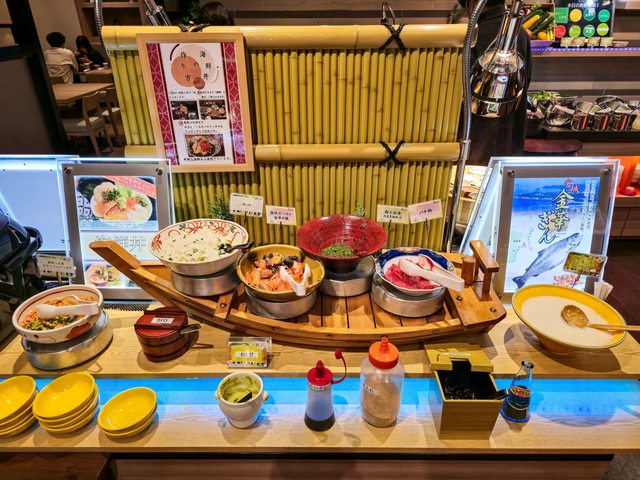 海鮮丼、芋煮、炒麵、牛肉咖哩飯、毛豆特色小吃