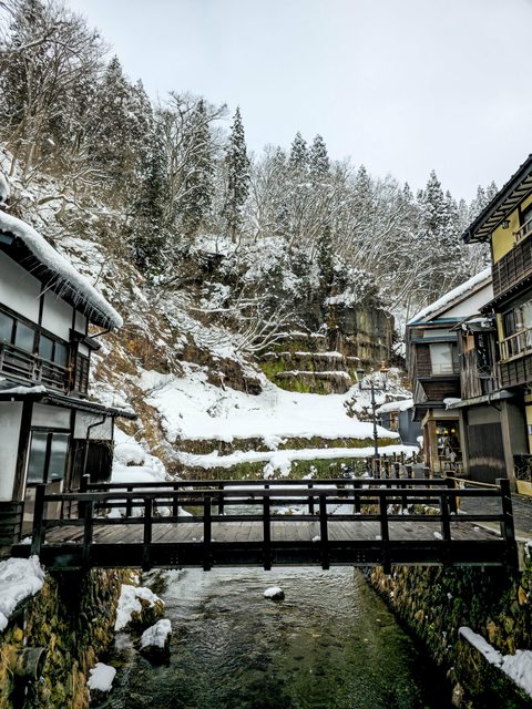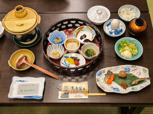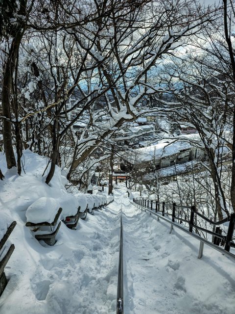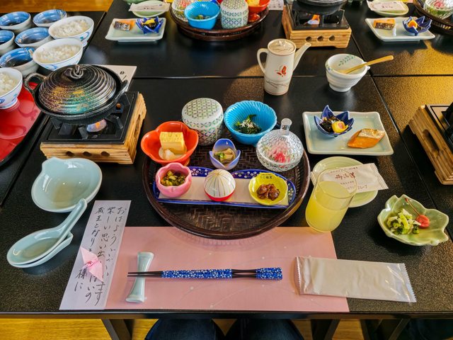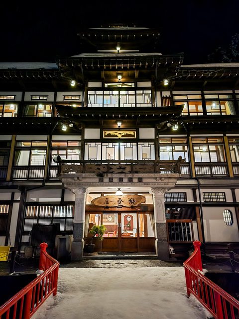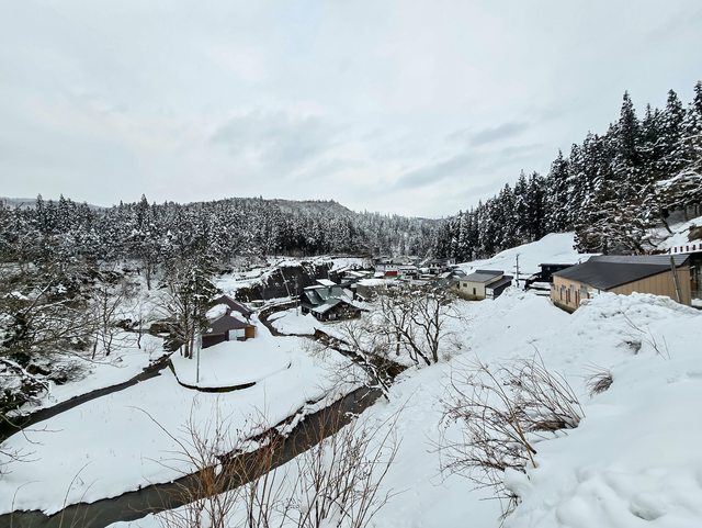 很漂亮但好冷,手快凍僵了,拍幾張就躲回房間 Day3:銀山溫泉 → 藏王溫泉 → 酢川溫泉神社 → 高見屋 早餐在能登屋享用,依然豐盛