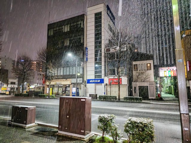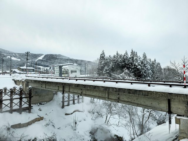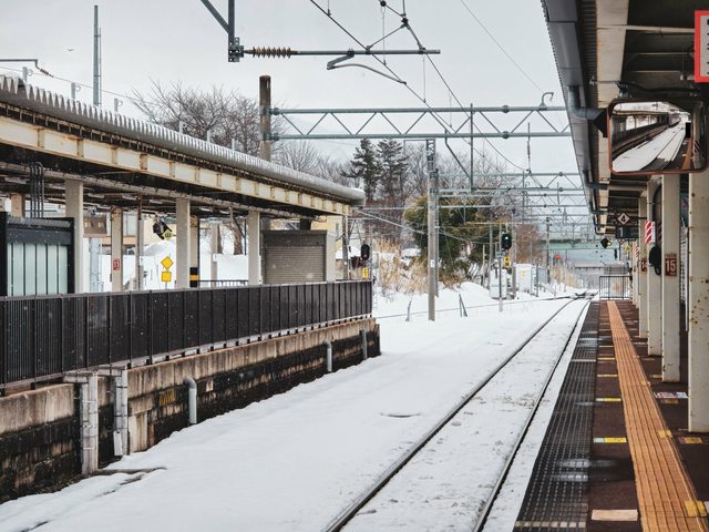 吃飽後退房就回到車站,一片雪白
