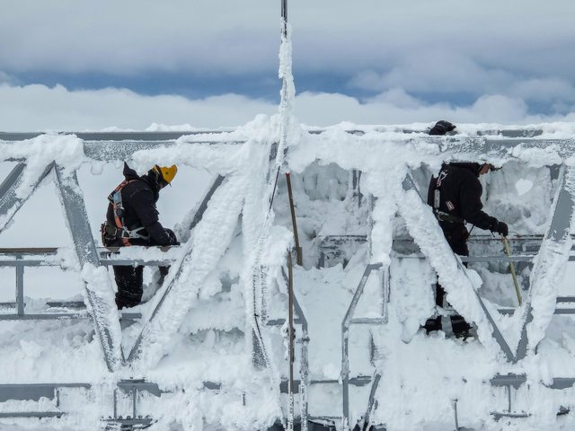 工人們正在進行除雪作業,辛苦了